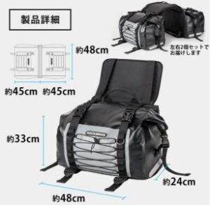 バイクサイドバッグは両側容量合わせて62L(片方31L×2)
